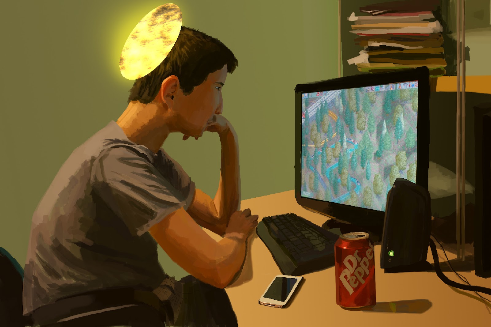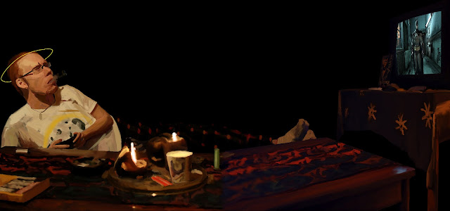 I am painting gamers in their gaming setups i am a gamer my self and an artist